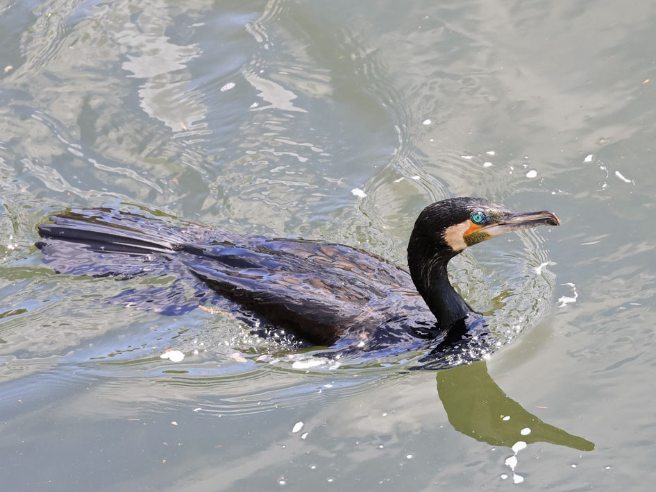 河内長野市では留鳥として全域に分布し、平地から山地の河川や農耕地のため池、湖沼などで普通に観察できるが水辺のない山間部での記録は少ない。幼鳥を観察することはあるが市内で繁殖しているかどうかは不明である。樹上に巣をつくり集団で繁殖する習性があるため住宅地近くで営巣した場合、悪臭や騒音等で環境被害が発生することがある。巣の撤去などで駆除しても近くで再営巣することが多く、対策するには専門家によるアドバイスを早期に受ける必要がある。