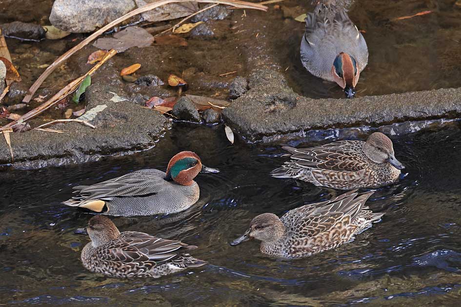河内長野市では冬鳥として渡来し、中部以北の平野部のため池、河川に生息する。滝畑ダムで観察されることもあるが個体数は少ない。小型のカモで雑食だが、植物の種や茎などを主に食べる。ため池などで水面に木が被さるような人目を避ける遮蔽物のある場所で観察されることが多い。一般的には、警戒心が強く人と距離を置くことが多いが、石川や西除川などでは、水深の浅い岸近くで嘴を動かしながら採餌している姿を観察できる。