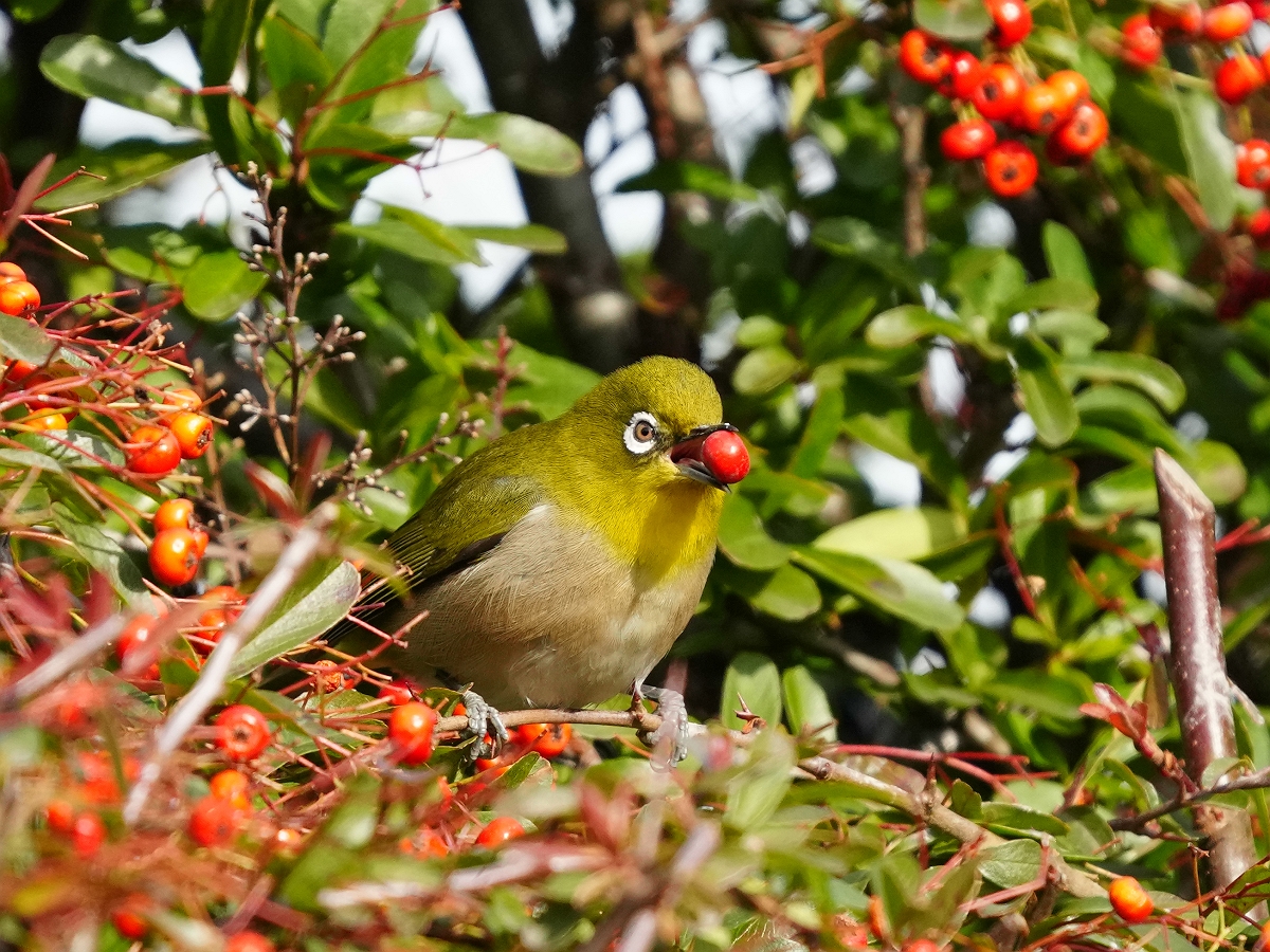 河内長野市では全域に生息する。冬には山地に住む個体が餌の多い低地に移動するため市街地でも見かける機会が増える。花の蜜や果実を主要な食物とするため冬季に庭にエサ台を設置してカキやミカンを置くと良く利用する。かつて愛玩飼養制度があり一家に1羽、識別用の脚環を付して飼うことが認められていた。この制度は2014年に廃止され現在は野鳥の捕獲・飼養は一切禁止されている。メジロの寿命は10年未満と思われることから、今もメジロを飼養している家庭があればそれらは違法飼養の可能性が高い。