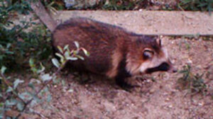 写真左は昼間に里山の開けた草地に出てきたところ。右は餌を探すために掘り返された公園の芝生。